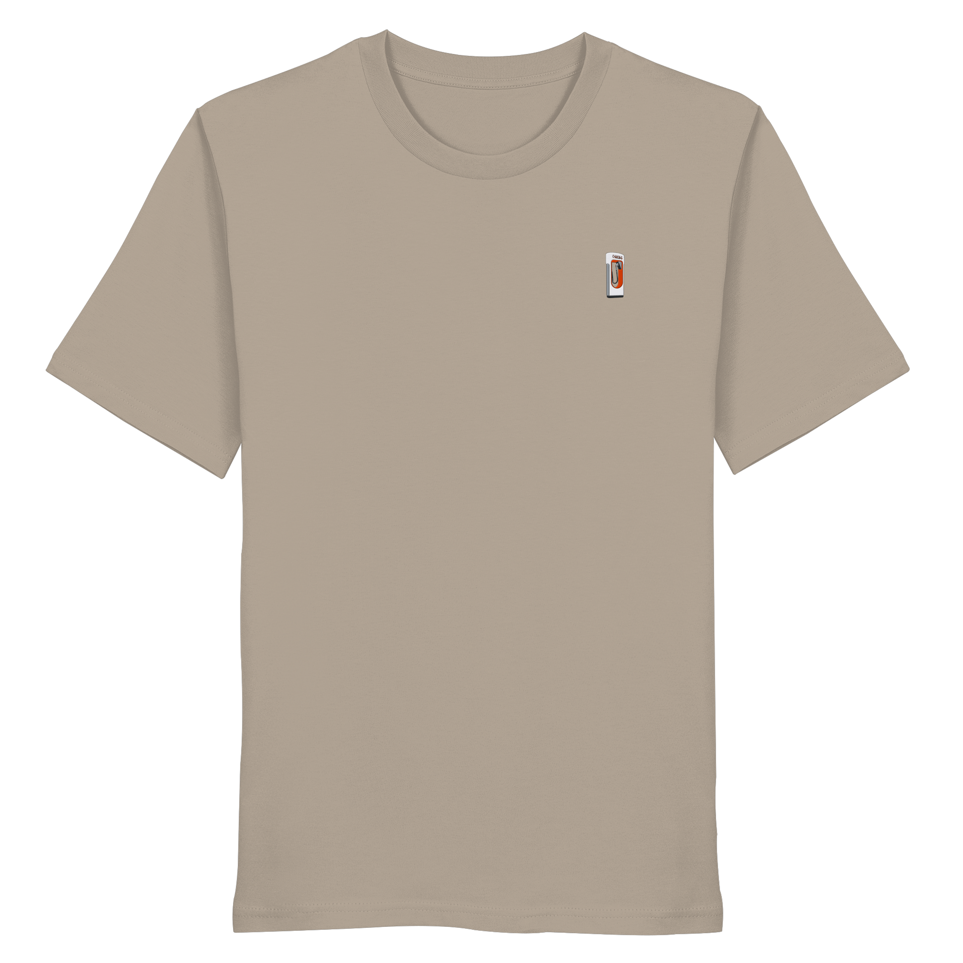 Unsere limitierte "Range Anxiety - Super - Organic Shirt (Stick)" Kollektion verbindet Stil mit Umweltbewusstsein. Das Design zeigt eine stilisierte Ladestation, die mit kräftigen Farben und klaren Linien eine Verbindung zur modernen Mobilität schafft.